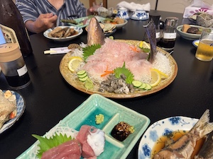 第44回 愛洲氏顕彰祭「剣祖祭」 奉納演武に参加のため、石井宗家、植木宗師と三重県は五ヶ所へ遠征?致しました。 参加者の一部は、日々の親睦も兼ねて前日泊しました。民宿ですが大変素敵なお宿で海の幸をたくさんいただきました。