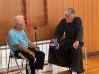 天王寺道場 明日、京田辺市で開かれる第29回総合武術演武大会参加のため、練習にも熱が入ります。 相談役と植木宗師はなんやら御密談?のご様子・・・。